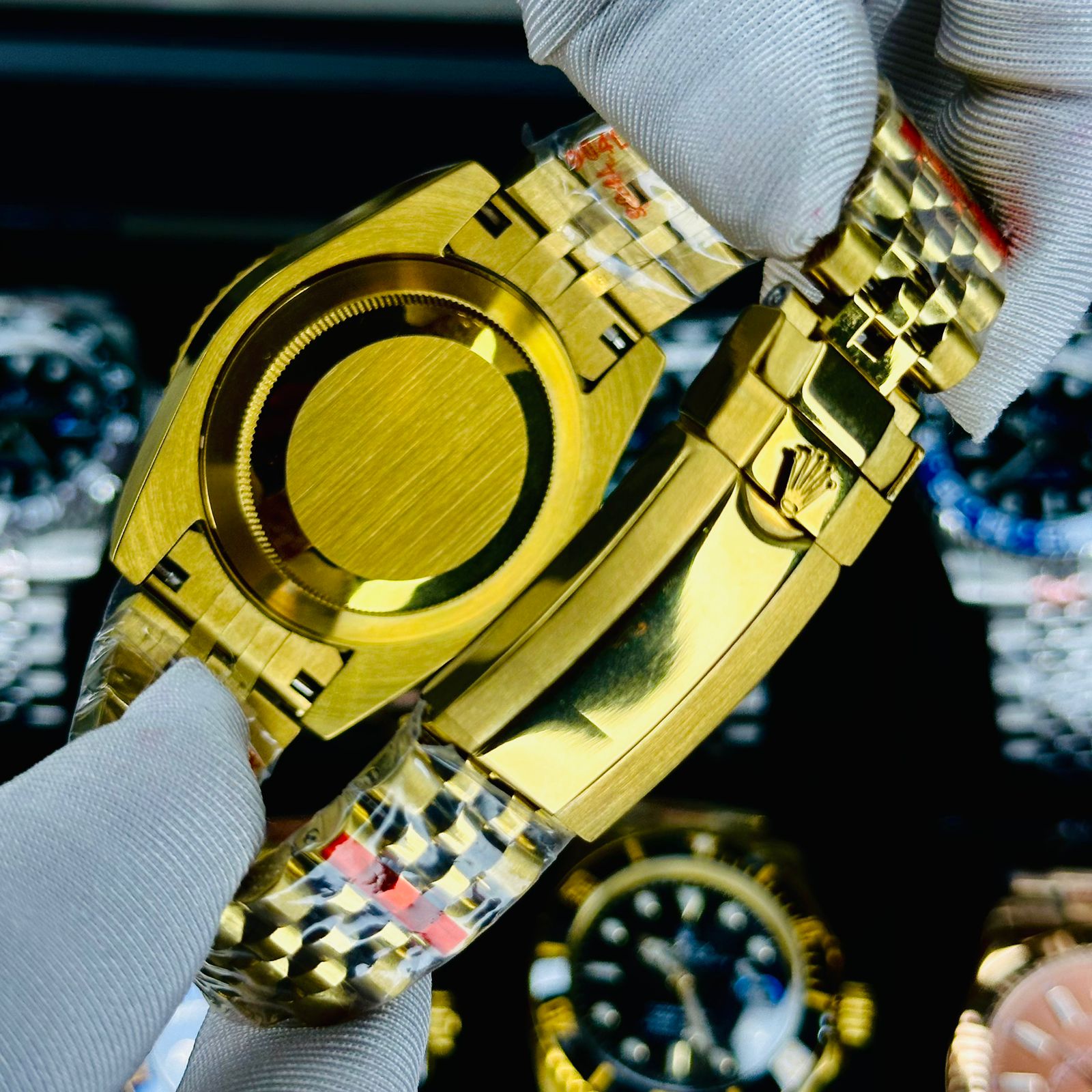 • Bracelet: Iconic Jubilee Bracelet with five-piece links, finished in premium yellow gold plating.