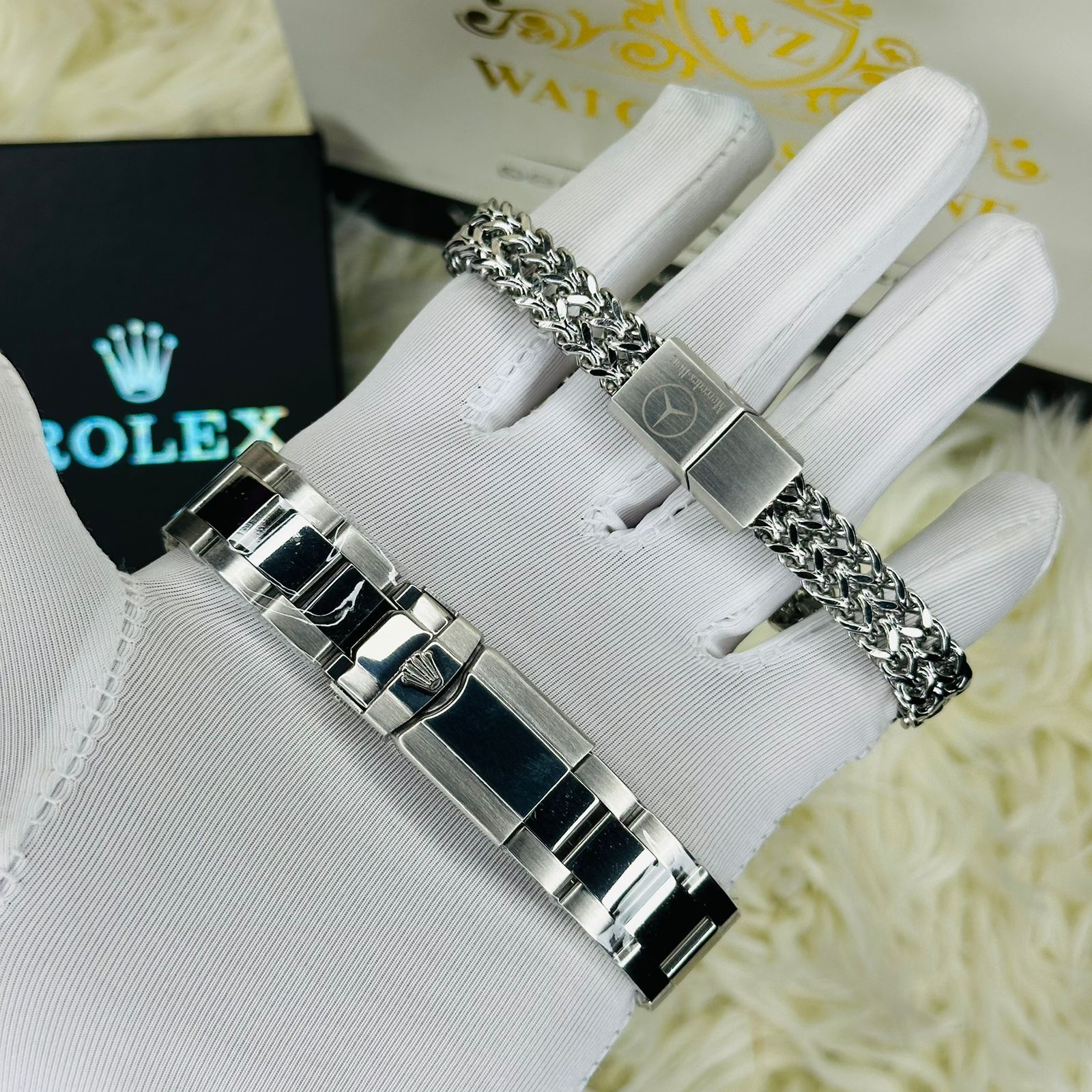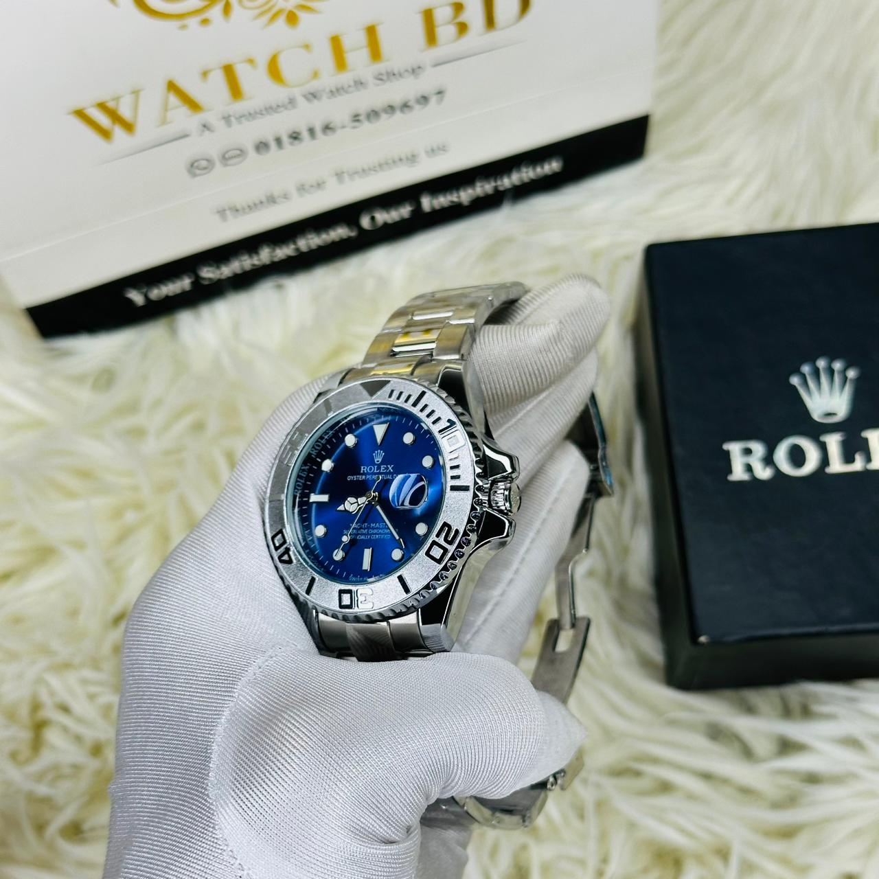 Premiume Quality Yach Sub Silver Blue RLX Watches & Bracelet Combo
