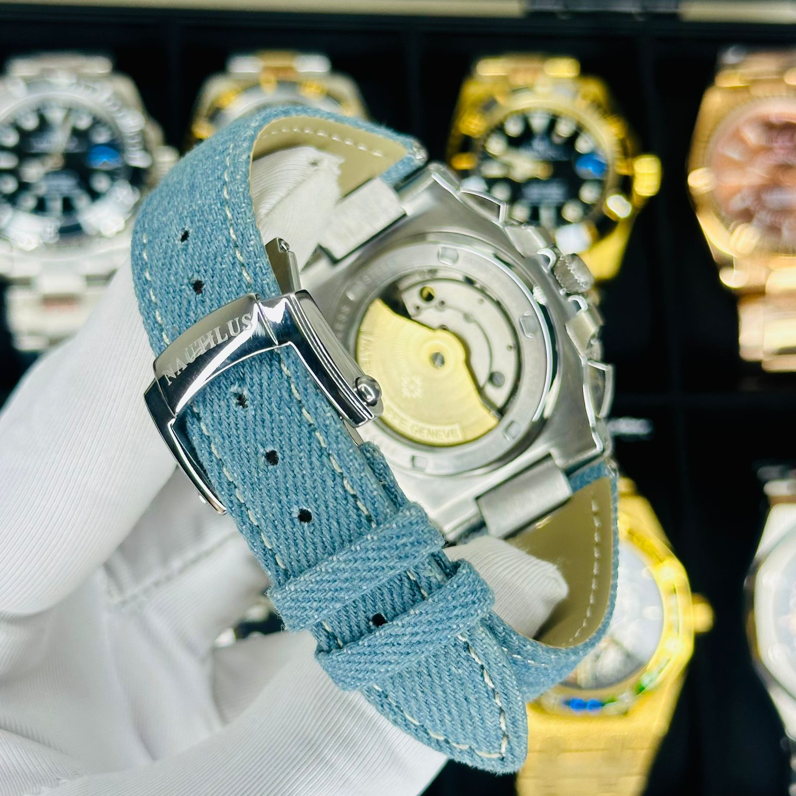 • The "Denim" Innovation: Stand out from the crowd with a premium, hand-stitched calfskin leather strap featuring a unique blue denim texture. It offers the rugged look of streetwear with the comfort of high-end luxury.