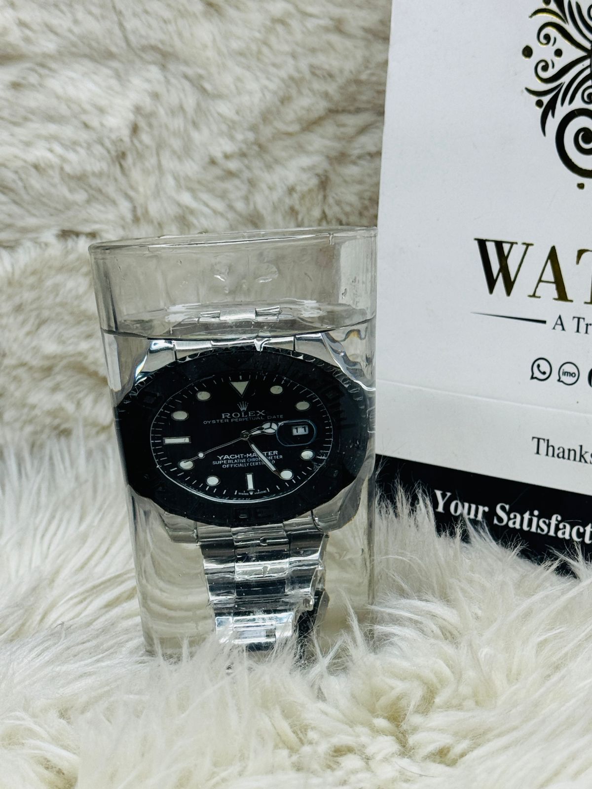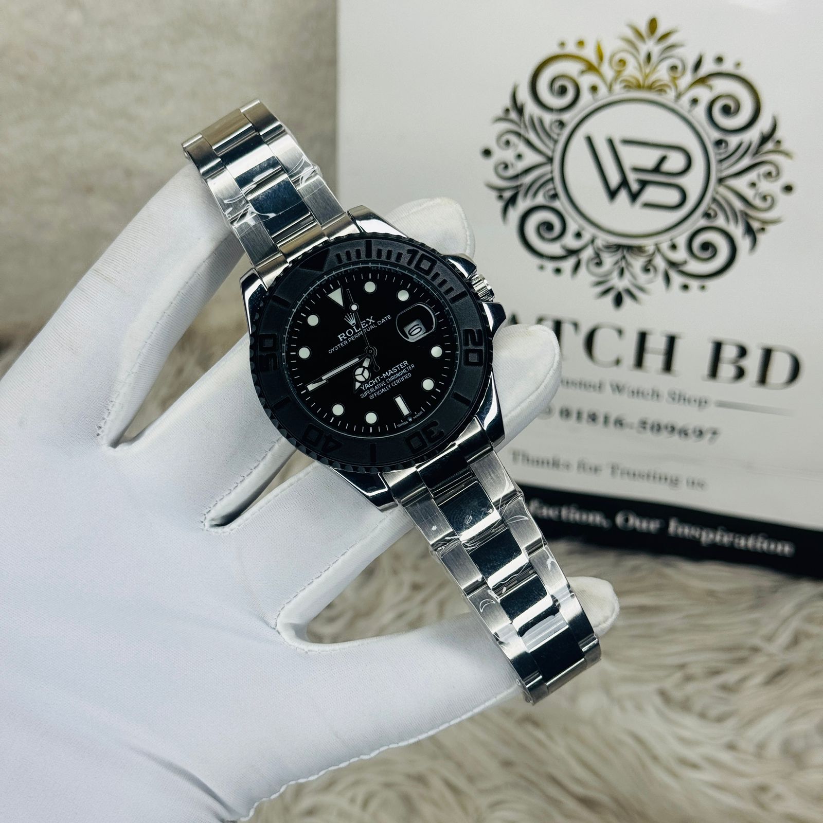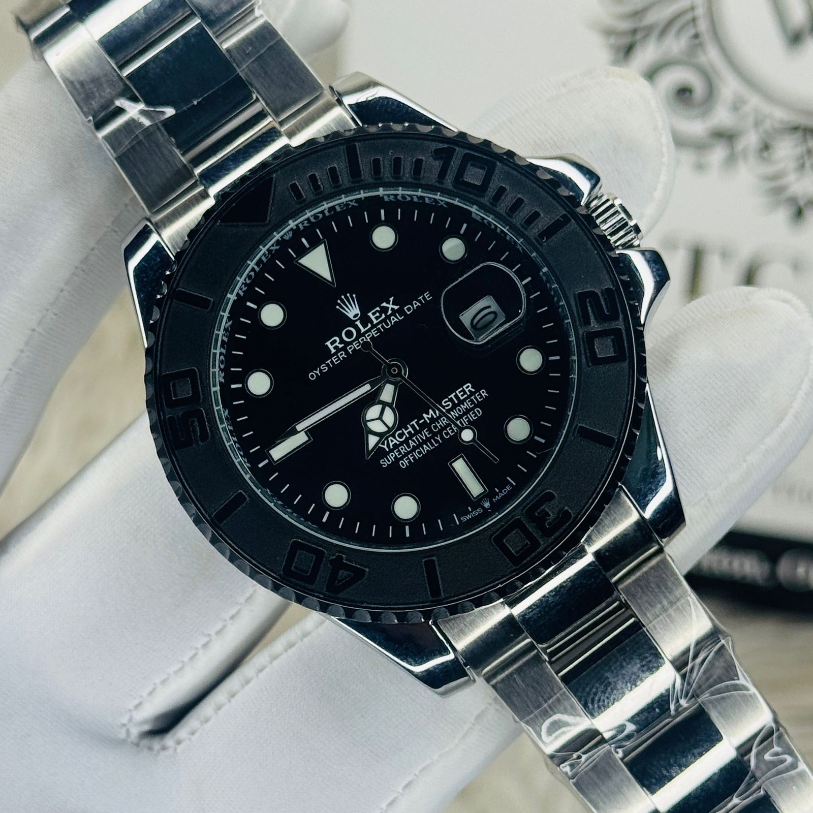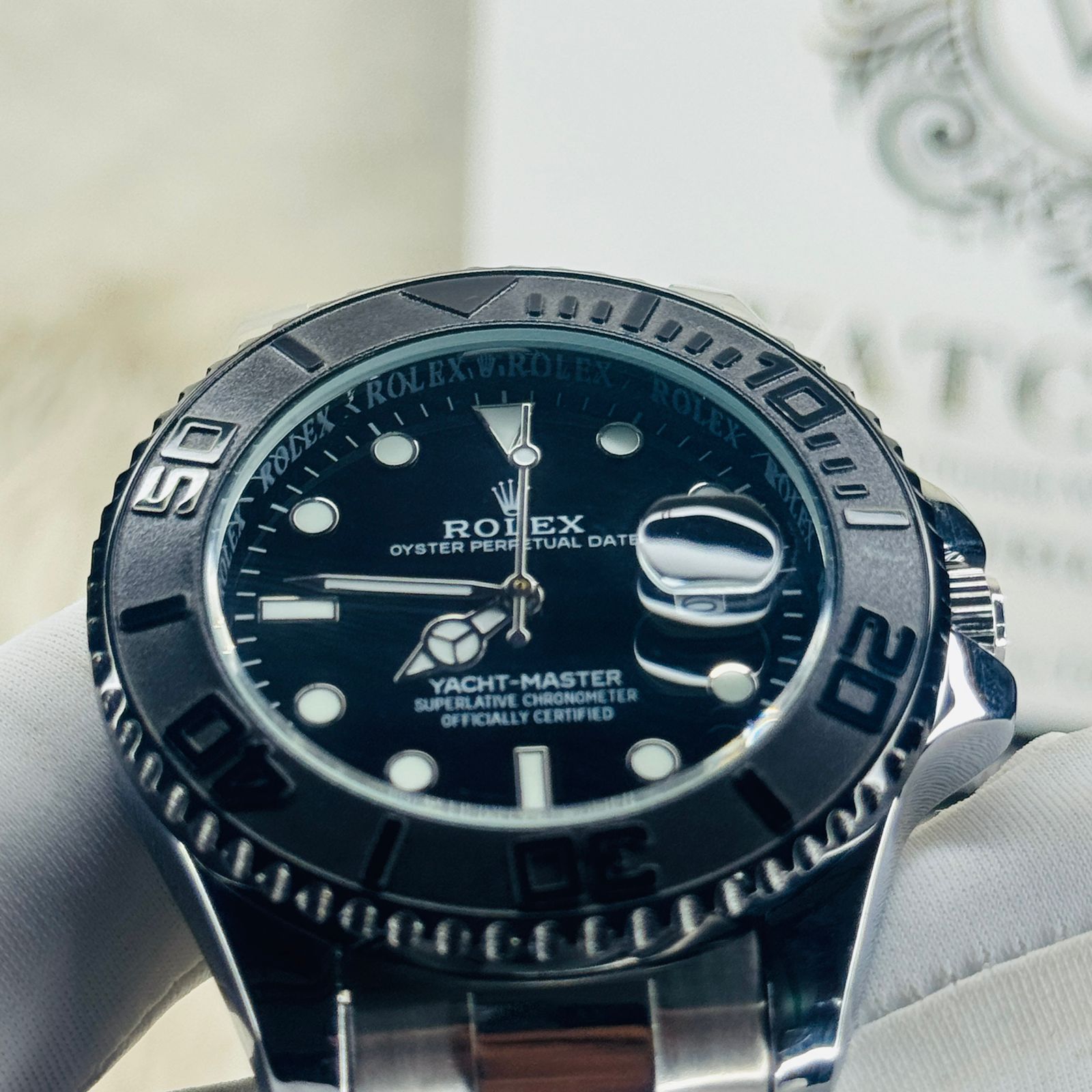 Experience the perfect blend of rugged durability and high-end luxury. This Rolex Yacht-Master (Black Bezel) inspired timepiece is designed for those who appreciate a bold, sophisticated look on their wrist.