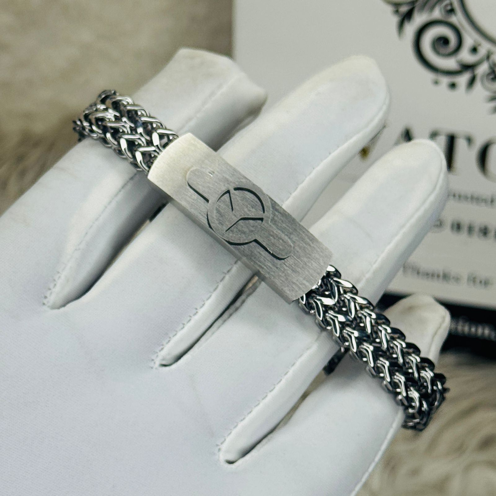 This set comes with a sleek, industrial-style Mercedes-Benz branded bracelet. The intricate chain design and brushed metal clasp make it the ultimate accessory to pair with your watch.